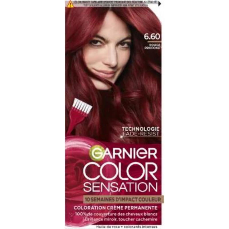 Découvrez Color Sensation, la nouvelle coloration crème permanente de Garnier. Grâce à sa technologie Fade-Resist*, Color Sensation offre un résultat couleur jusqu'à 10 semaines** et couvre 100% des cheveux blancs**. (*Anti-affadissement **Tests instrumentaux) 10 semaines d'impact couleur*. 100% de couverture des cheveux blancs*. Brillance miroir, toucher cachemire. (*Tests instrumentaux). 1210216 - AQUA / WATER - HYDROGEN PEROXIDE - CETEARYL ALCOHOL - SODIUM LAURYL SULFATE - SODIUM BENZOATE - ETIDRONIC ACID - CITRIC ACID - TETRASODIUM EDTA (F.I.L. B222323/2). - 1229064 C - AQUA / WATER - CETEARYL ALCOHOL - BEHENTRIMONIUM CHLORIDE - GLYCERIN - CANDELILLA CERA / CANDELILLA WAX - AMODIMETHICONE - CETYL ESTERS - ISOPROPYL ALCOHOL - ROSA CANINA SEED OIL. Produit unitaire EAN 3600542576741.