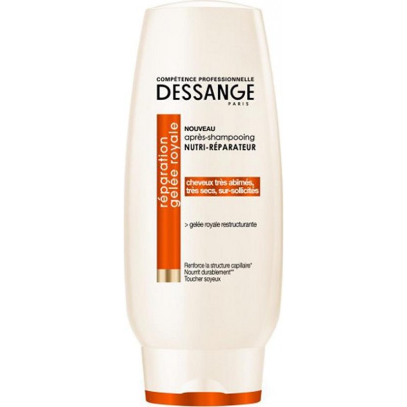 Dessange a sélectionné un ingrédient légendaire: la gelée royale restructurante, véritable élixir revitalisant connu pour ses propriétés nutritives. Votre chevelure est durablement nourri et restructurée. Découvrez un cheveu intégralement transformé, fluide au toucher soyeux. Lot économique de 4 flacons. AQUA / WATER, CETEARYL ALCOHOL, BEHENTRIMONIUM CHLORIDE, CETYL ESTERS, ROYAL JELLY, POTASSIUM HYDROXIDE, AMODIMETHICONE, TRIDECETH-6, COUMARIN, CHLORHEXIDINE DIGLUCONATE, ISOPROPYL ALCOHOL, CITRIC ACID, CETRIMONIUM CHLORIDE, CITRONELLOL, BENZYL SALICYLATE, BENZYL ALCOHOL, PARFUM / FRAGRANCE. Produit unitaire EAN 3600550949278, lot de 4 EAN 3701018092243.
