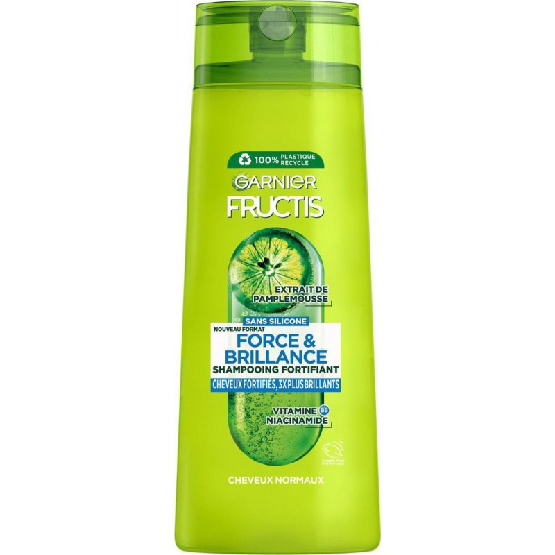 Fructis présente un système fortifiant à l'extrait de pamplemousse & Vitamine B6. Les cheveux sont plus forts, revigorés et 3 fois plus brillants*. *Test instrumental. 1267702 - AQUA / WATER - SODIUM LAURETH SULFATE - COCO-BETAINE - GLYCOL DISTEARATE - CITRUS GRANDIS FRUIT WATER / GRAPEFRUIT FRUIT WATER - FUMARIC ACID - CARBOMER - NIACINAMIDE - PPG-5-CETETH-20 - PEG-55 PROPYLENE GLYCOL OLEATE - SODIUM CHLORIDE - SODIUM HYDROXIDE - PYRIDOXINE HCl - PROPYLENE GLYCOL - GUAR HYDROXYPROPYLTRIMONIUM CHLORIDE - CITRIC ACID - OCTYLDODECANOL - SODIUM BENZOATE - SALICYLIC ACID - LINALOOL - AMYL CINNAMAL - HEXYL CINNAMAL - BENZYL ALCOHOL - PARFUM / FRAGRANCE (F.I.L. Z70012942/1). Les listes d' entrant dans la composition des produits de notre marque sont régulièrement mises à jour. Avant d'utiliser un produit de notre marque, vous êtes invités à lire la liste d' figurant sur son emballage afin de vous assurer que les sont adaptés à votre utilisation personnelle. Produit unitaire EAN 3600542575843.